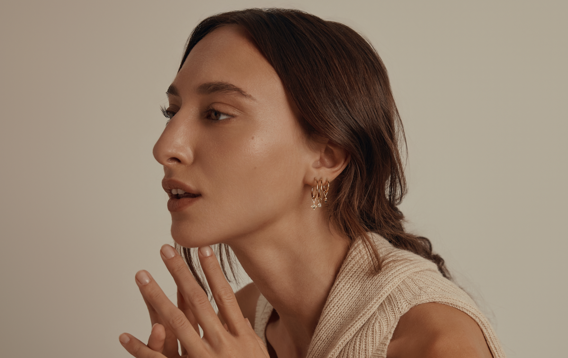 עגיל חישוק + ואלרי יהלומים לבנים