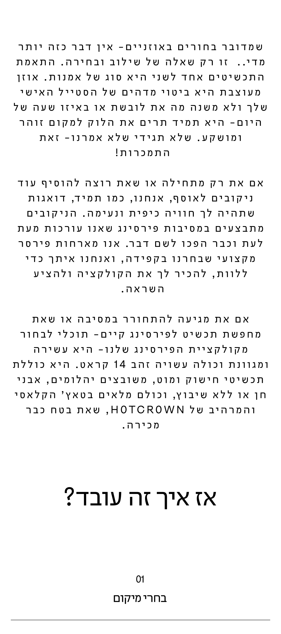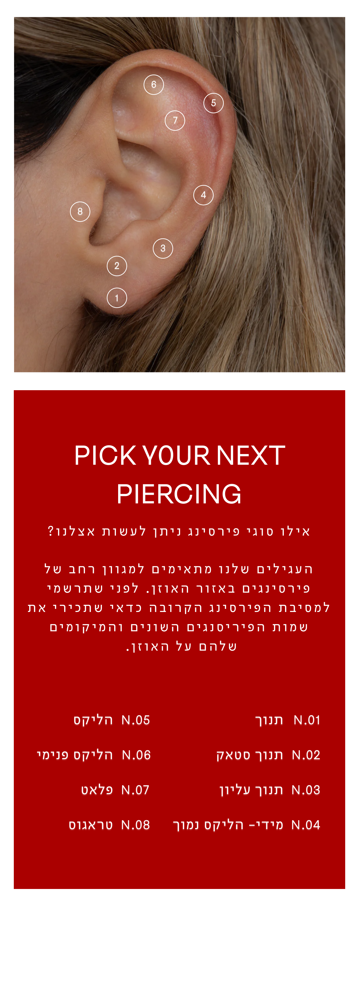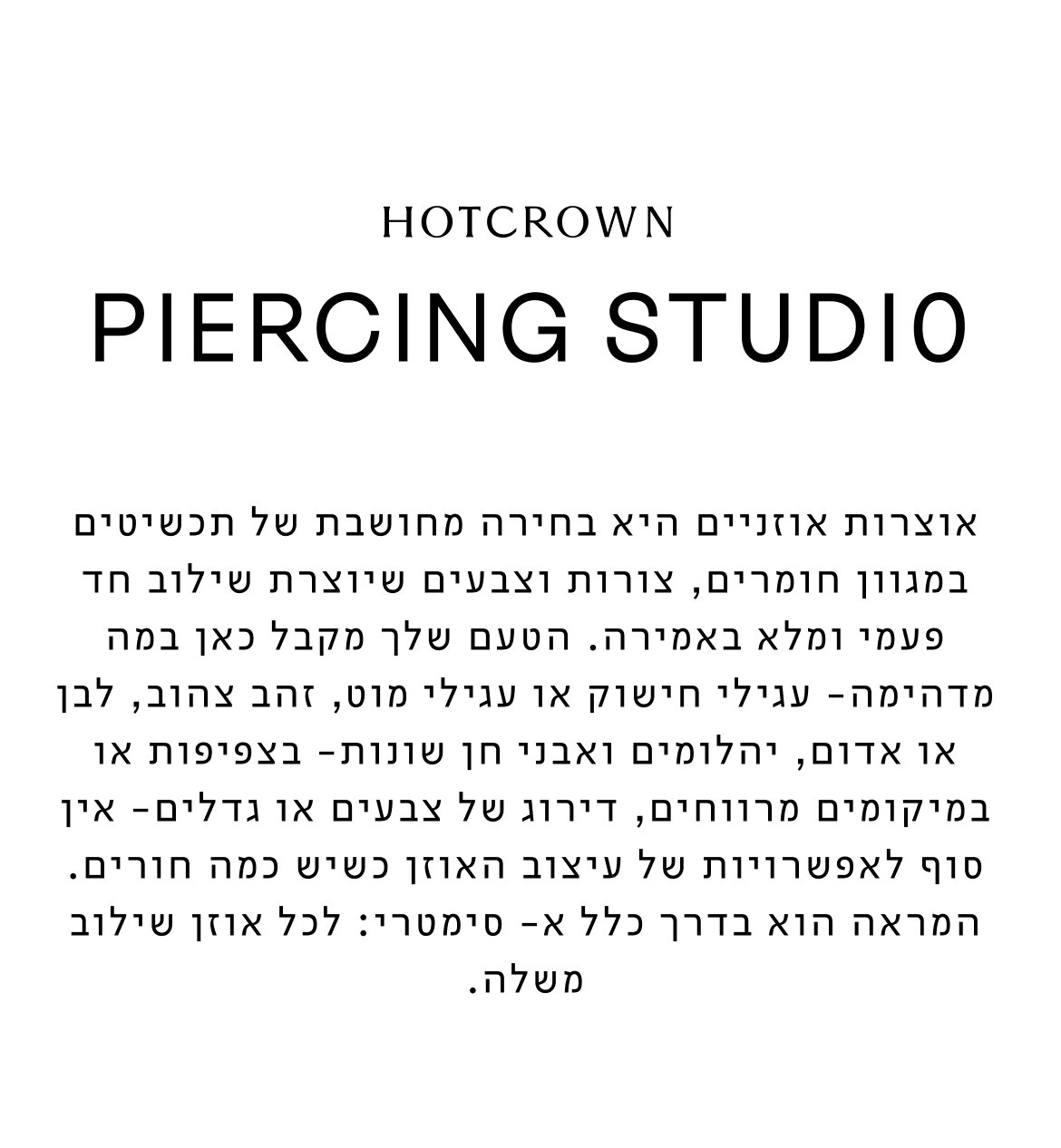 מלאי הפירסינג בחנות משתנה מרגע לרגע ולכן ממולץ להזמין עגיל מראש.