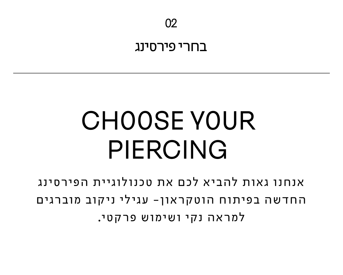 הפירסינג מתבצע אצלנו בחנות- באווירה מלאה בסטייל, אלגנטית ונינוחה, תוך שמירה על כל כללי ההיגיינה: מחט חד- פעמית ועגיל סטרילי ועל ידי פירסרית הבית שלנו, מקצועית ומוסמכת שנבחרה בקפידה. ההשתתפות במסיבה בהרשמה מראש