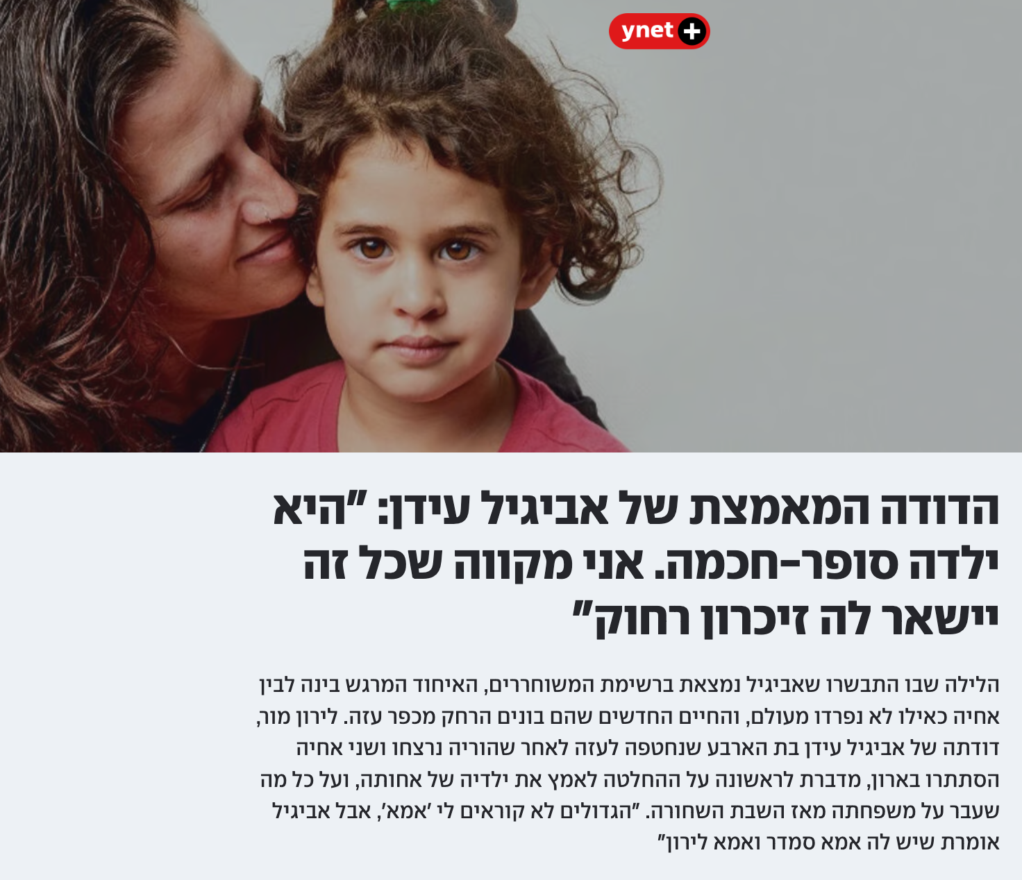 אביגיל חזרה אחרי 55 יום בשבי ואומצה עם אחיה לחיק משפחתה של דודתה האוהבת, לירון מור.