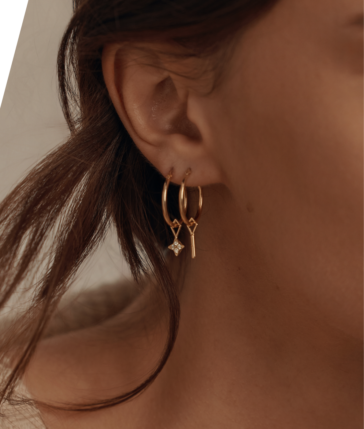 תליונים מינימליסטיים עם טוויסט עיצובי – שמוסיפים לכל חישוק סטייטמנט שקט, מדויק ונשי.