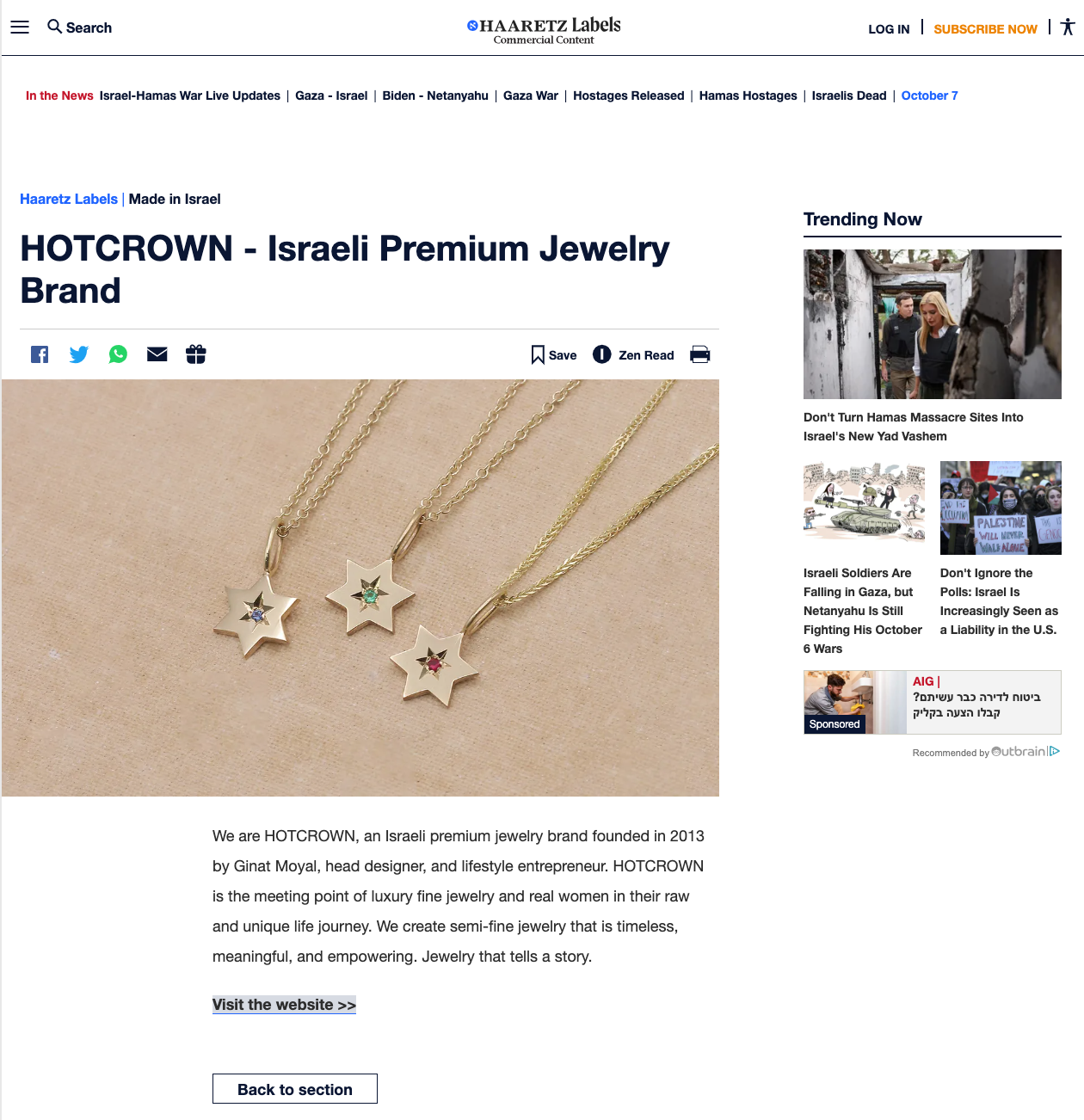 An Israeli premium jewelry brand founded in 2013 by Ginat Moyal, head designer, and lifestyle entrepreneur. HOTCROWN is the meeting point of luxury fine jewelry and real women in their raw and unique life journey.